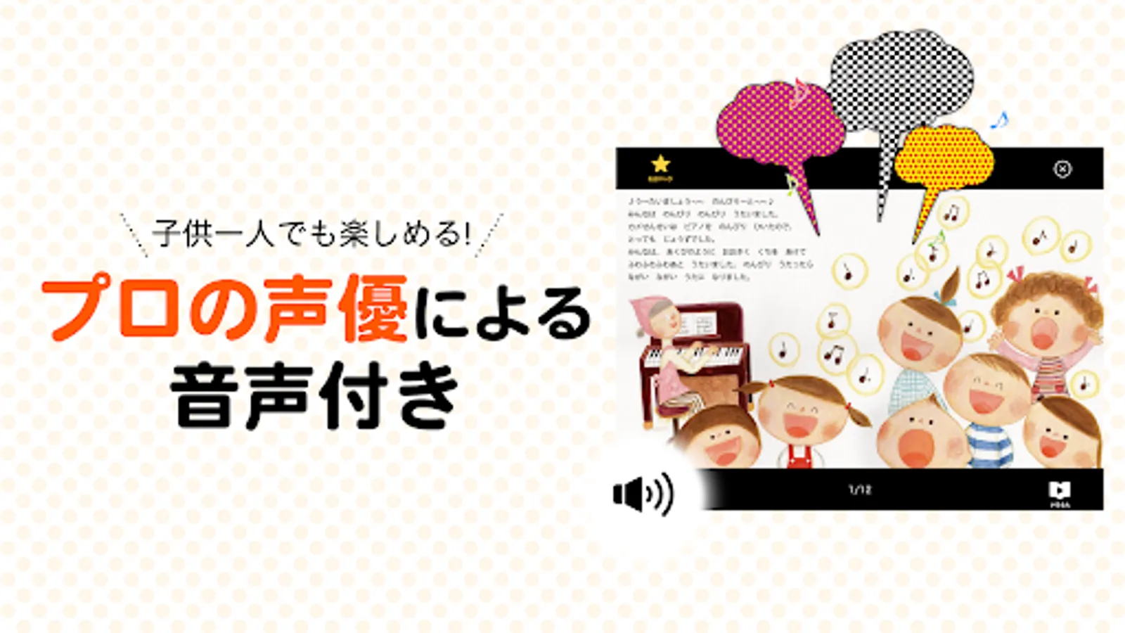 It also comes with an automatic page-turning function and a story-telling function by a professional voice actor, so even young children can enjoy it alone! There are no ads, so you can play with confidence.