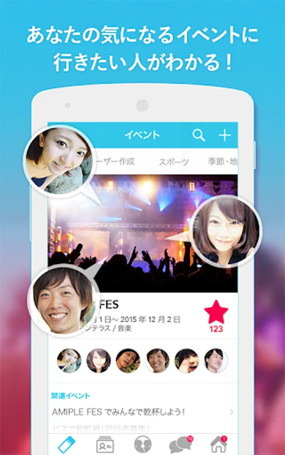 Entertainment event information / ticket information app "AMIPLE" that allows you to find friends (accompanying people) to go with