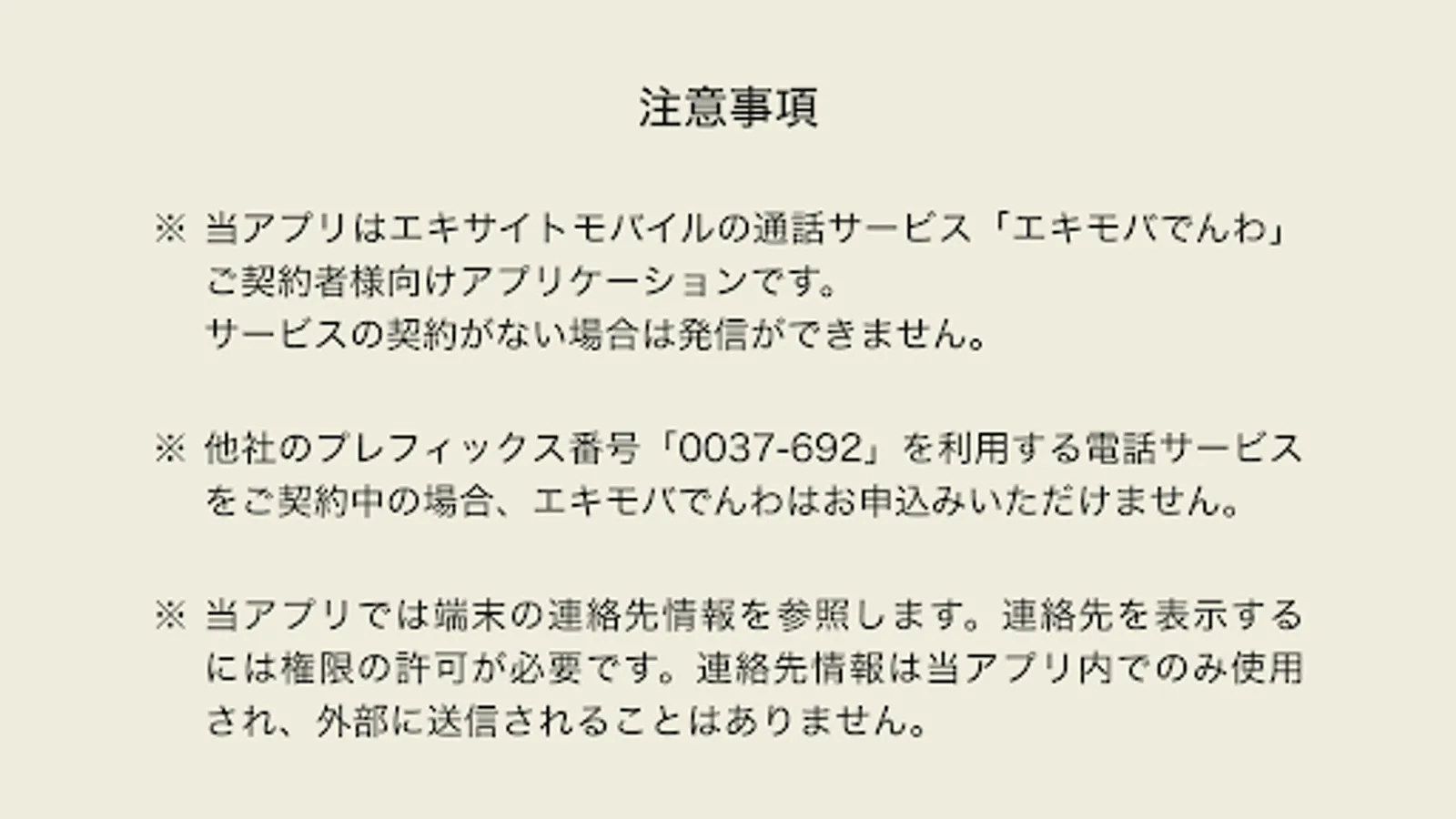 * If you are subscribed to a telephone service that uses the prefix number "0037-692" of another company, you cannot apply for Ekimova Denwa. If you wish to use Ekimoba Denwa, apply from Excite Mobile My Page after completing the cancellation of other companies' prefix telephone service.