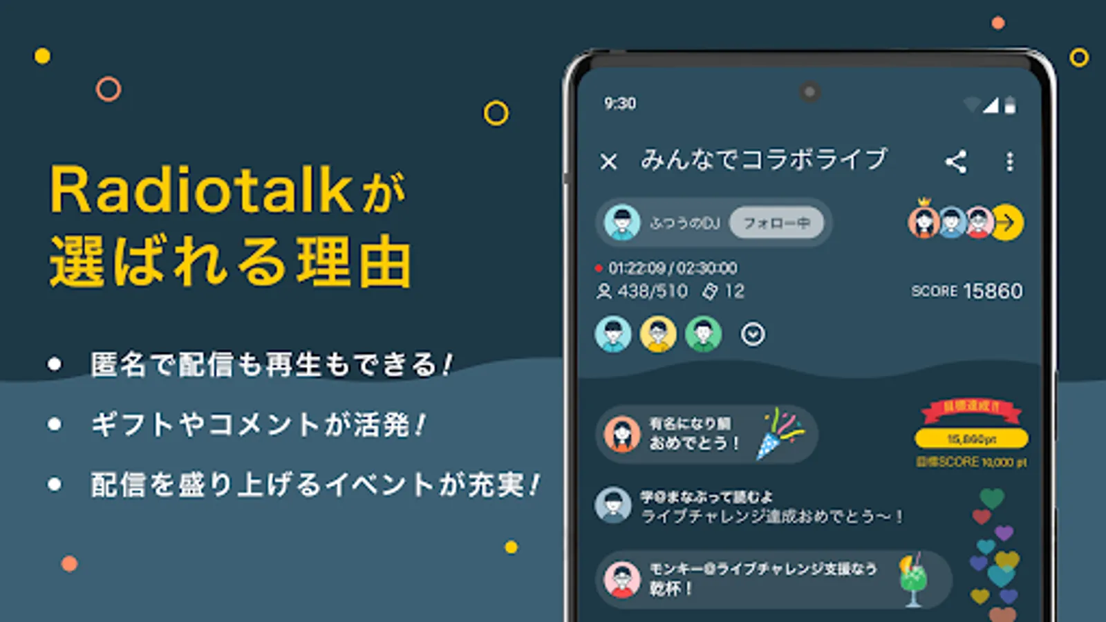 Enjoy audio distribution that suits your style, such as live distribution that you can enjoy with listeners in real time, and distribution that records talks only with your smartphone.