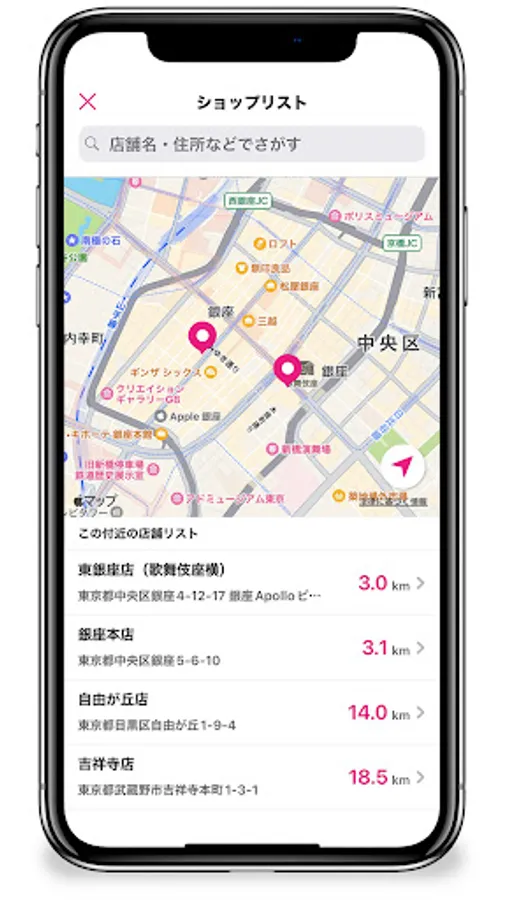 Ginza main store, Higashi Ginza store [next to Kabukiza], Jiyugaoka store, Kichijoji store, LaLaport Fujimi store, Aeon Mall Urawa Misono store, Iias Tsukuba store, etc.