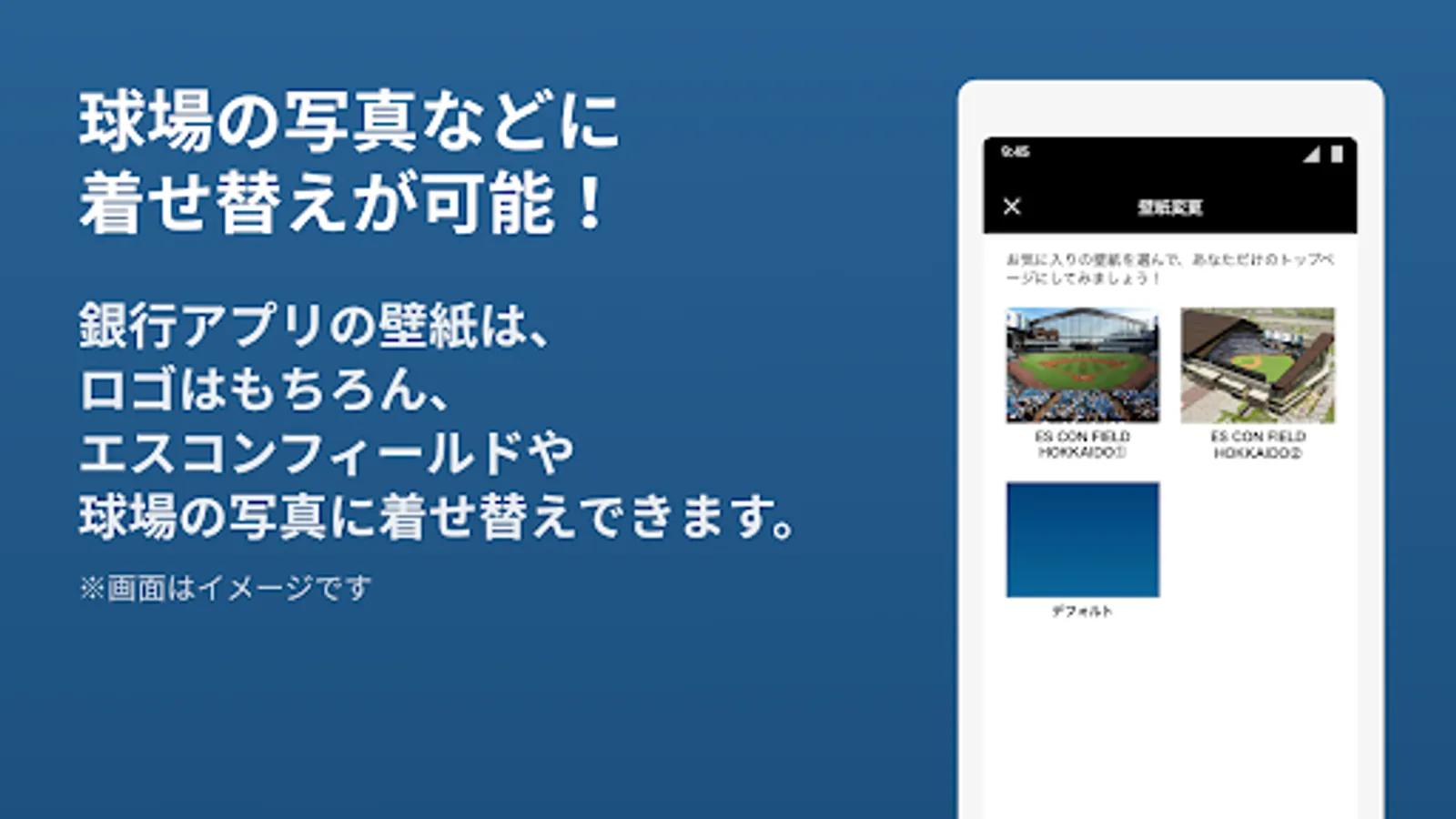 ◆ You can change the wallpaper of the bank app to a picture of Esconfield HOKKAIDO as well as the logo.