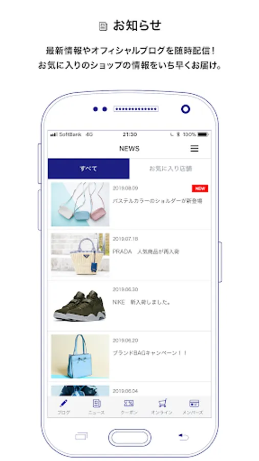 You can see the official blog of the store staff, the latest arrival information for each store, and event information in real time. You can view your favorite store information and coupons, and bookmark your favorite blog so you can use it as a reference for your daily shopping.
