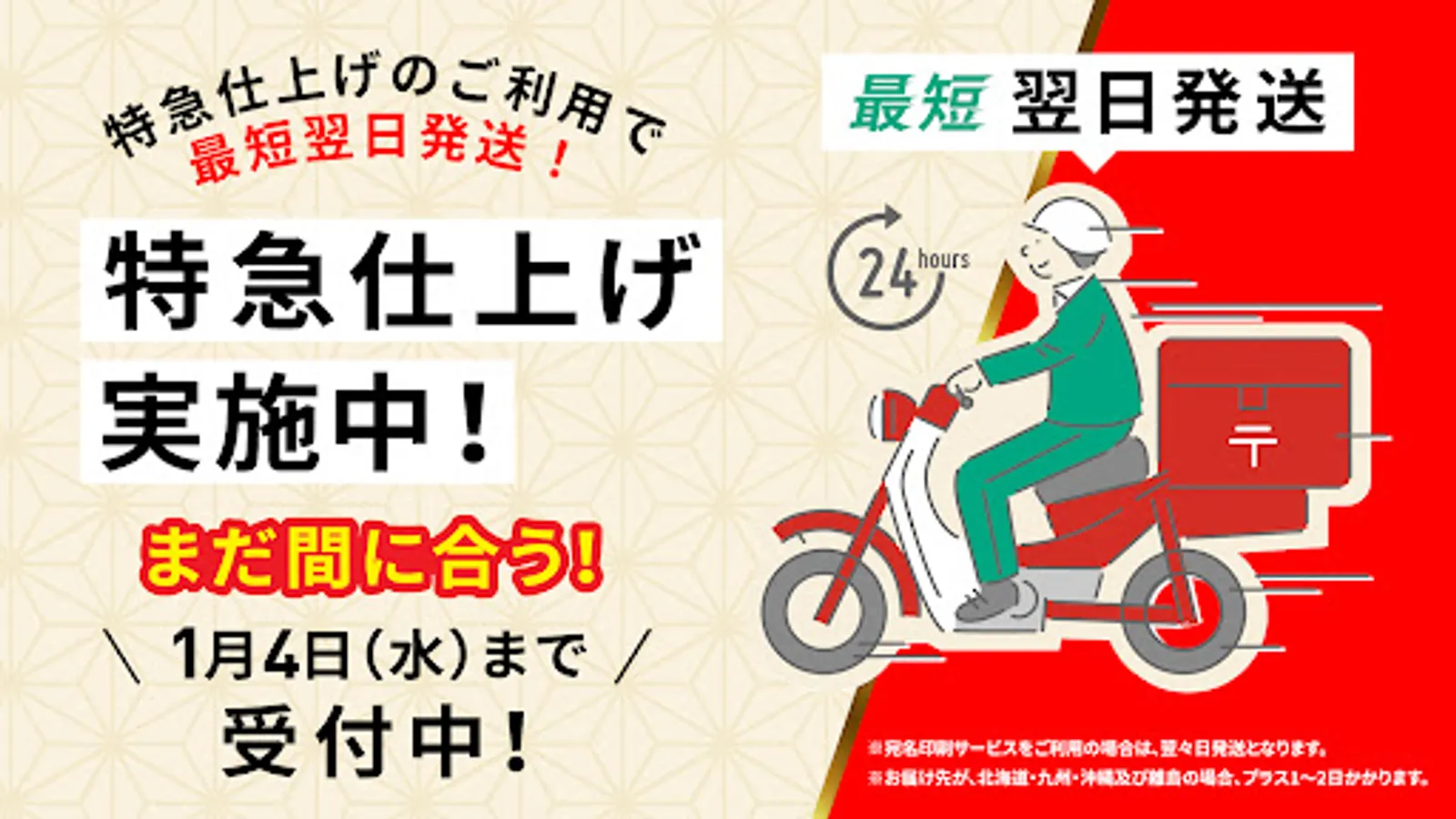 ・Completed New Year's cards can be shipped for free even by courier! Photo shops and convenience store receipt are also free shipping.