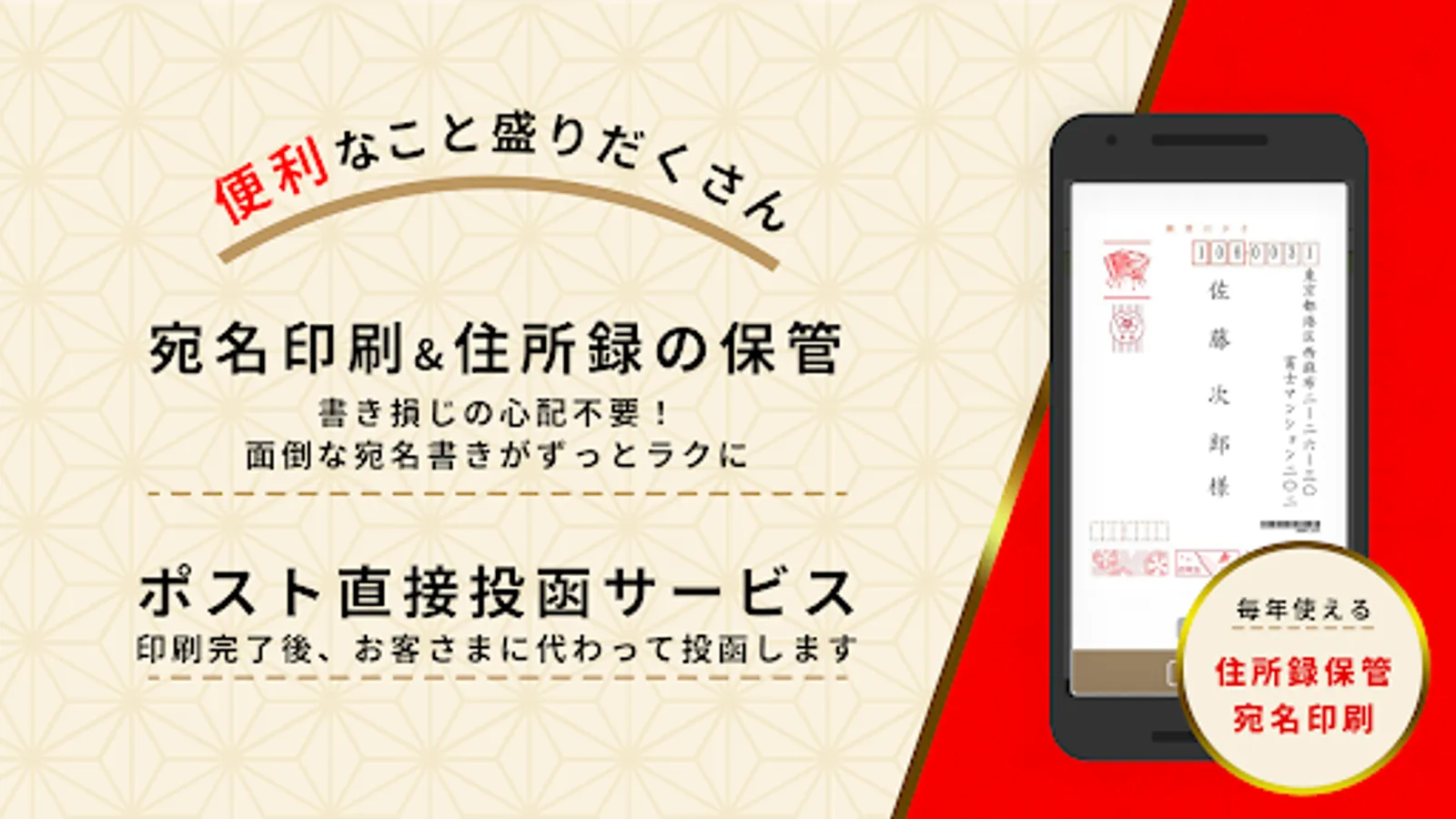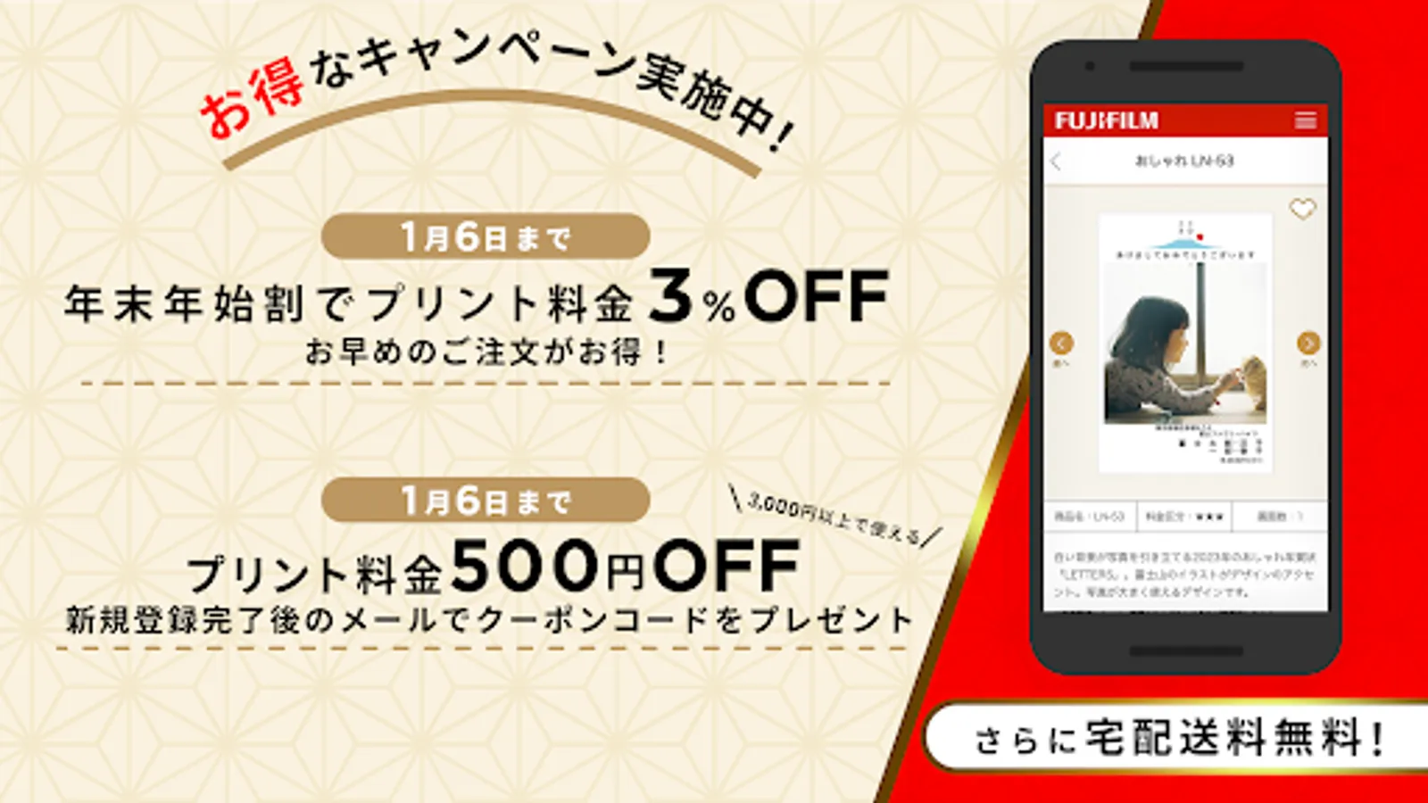 In addition, we have prepared a number of [advantageous] and [convenient] services unique to "Fujifilm's New Year's card app"!