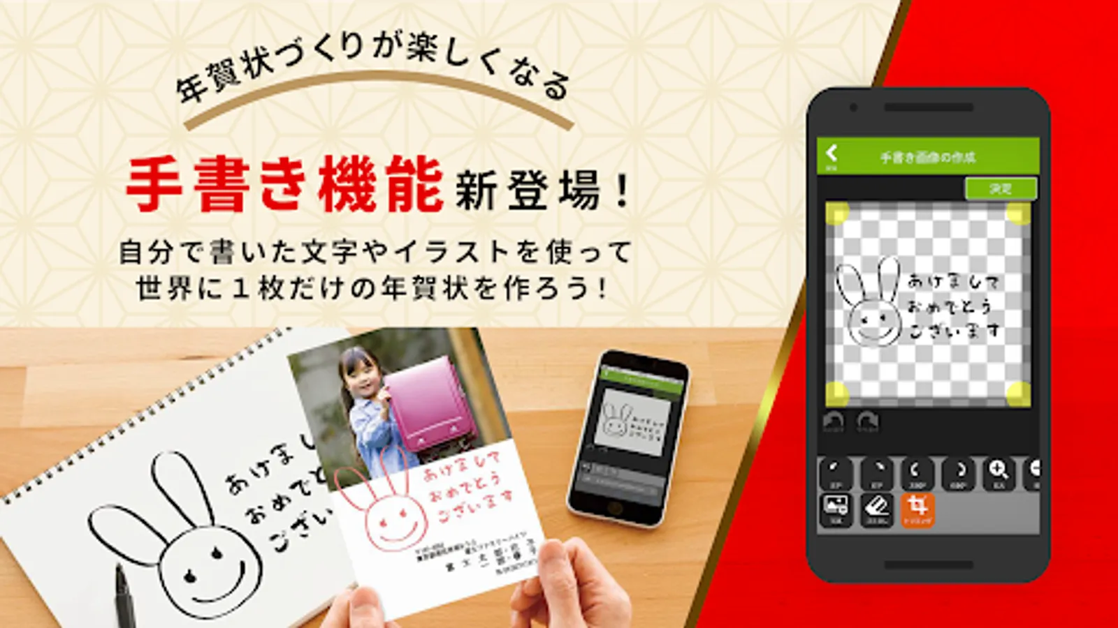 You can create high-quality New Year's cards even with photos on your smartphone, so even those who use the New Year's card app for the first time can use it with confidence.