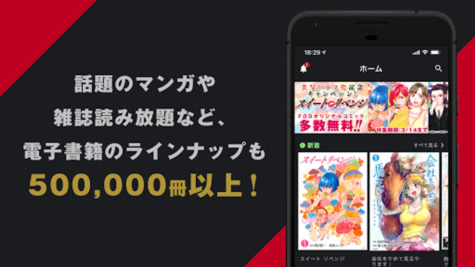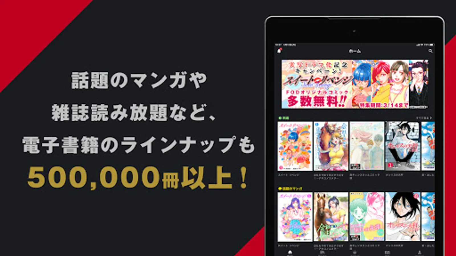 The lineup of e-books such as popular manga is over 500,000!