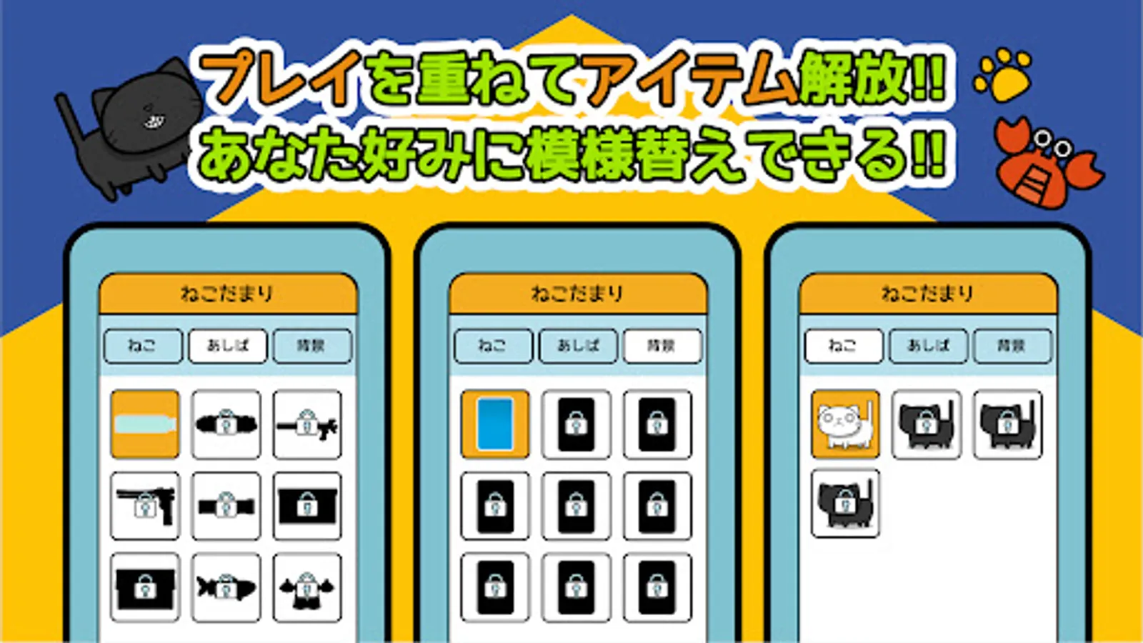 Change the type of cat and its foothold!・・・You can design your own game with in-game points!