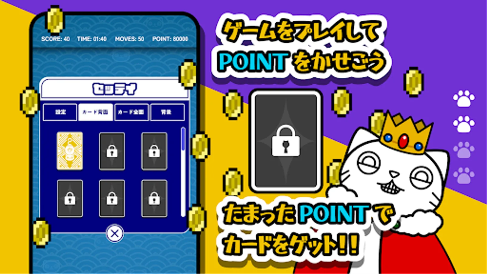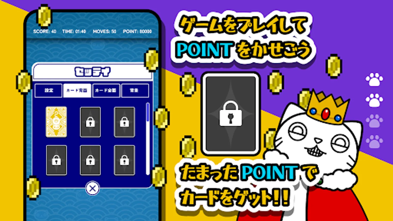 - クリアすることでポイントがたまるので、新しいねこカードを開放できます。