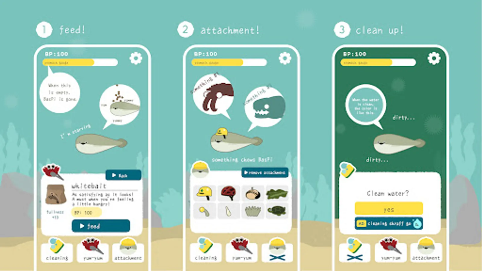 In this tank, there are sometimes mysterious creatures that are after the "BasPi". Normally, this type of fish should be armored, but this "BasPi" is fluffy and unreliable. I have prepared some equipment for just in case. You will not be able to use them until you become an adult, but I hope that somehow you will survive the crisis with this equipment. Thank you very much.