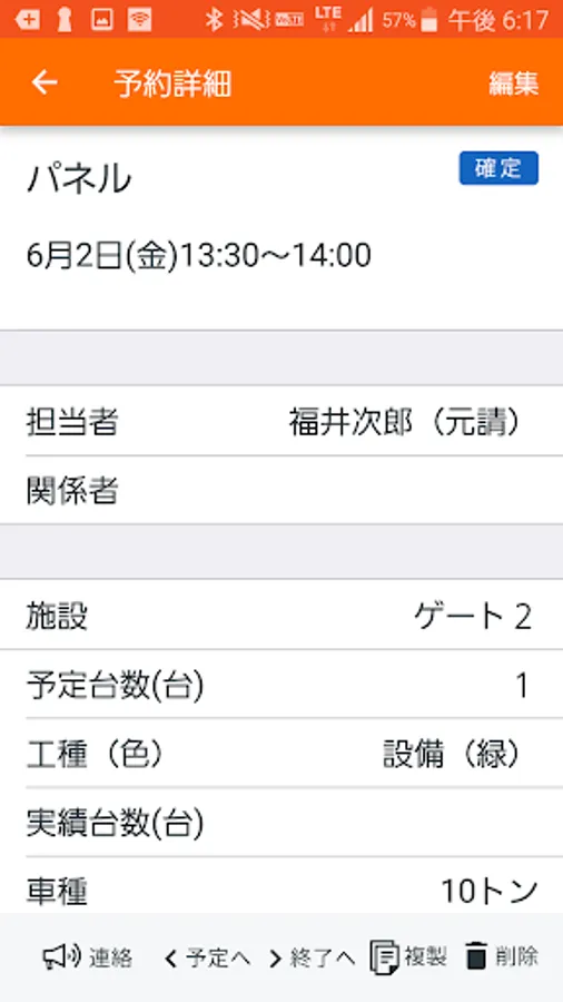 予定→確定→実施済みと状態が変わる仕組みで、確定した状態で入力できる項目が実績入力項目となります。