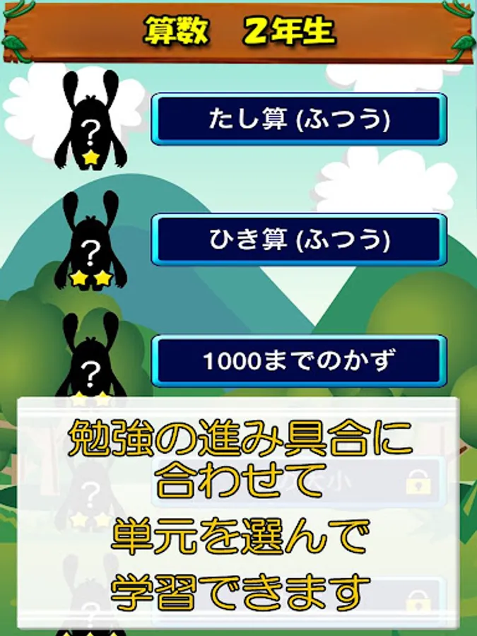 Definitive edition of second grade math app! Select the unit to match the progress of learning, you can efficiently review. 4 Ease of use that-choice quiz format, in a fun going to collect monsters to reward study, children will study continuously.