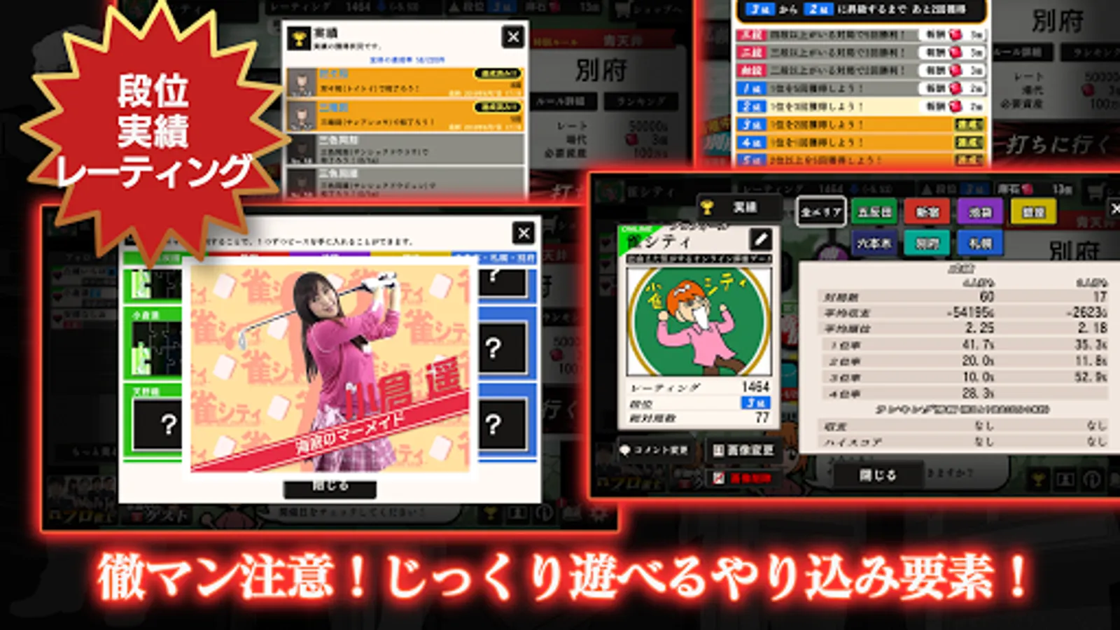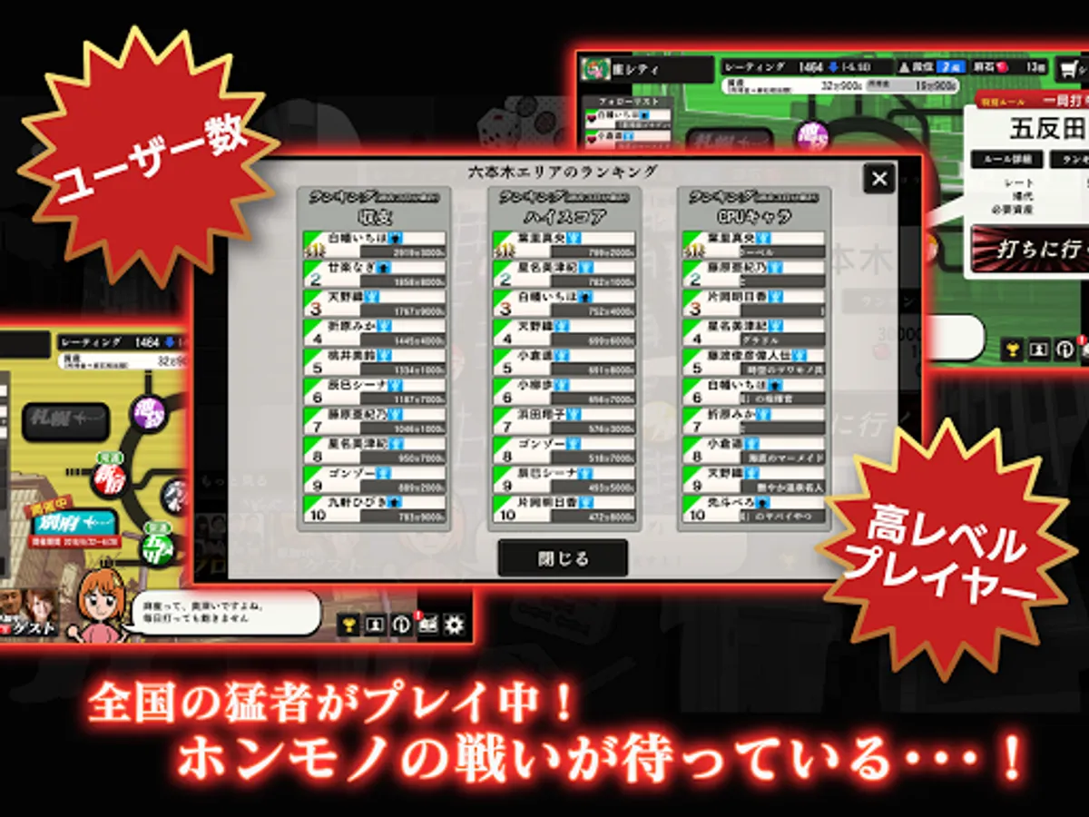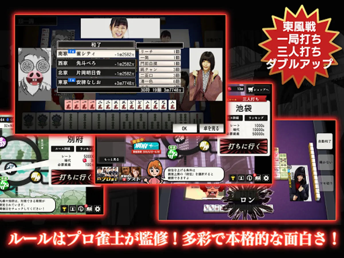 「雀シティ」はプレイヤー同士がオンラインで繋がってリアルに対局ができる、基本無料で遊べる麻雀ゲームです。日本プロ麻雀協会公認・プロ競技麻雀団体RMU公認の超本格派仕様となっています。