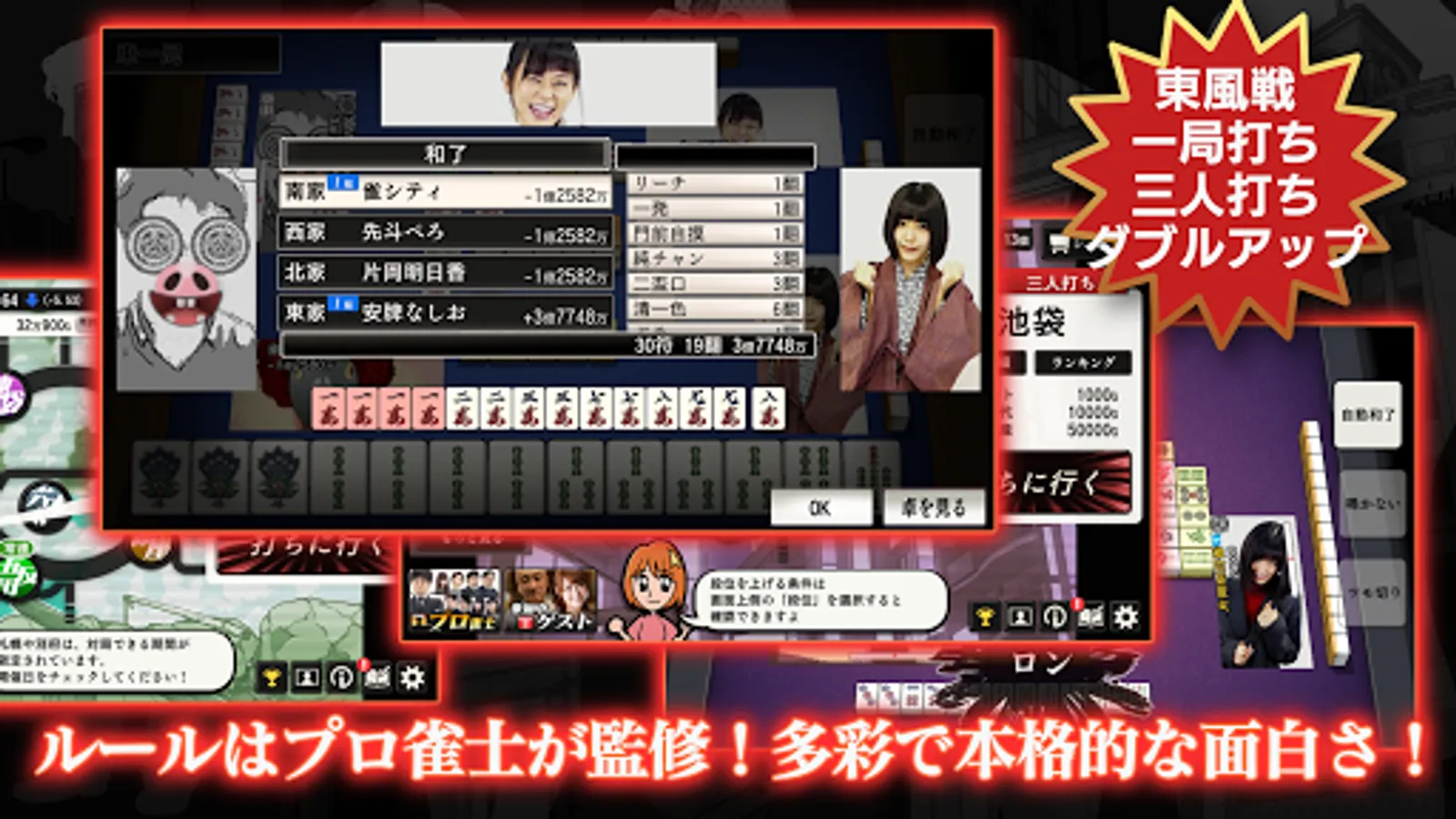 カメラ機能で対局中の相手の顔を見ながら打てるので、まるでどこかの雀荘で出会ったかのような、本格的な対局気分が味わえます。