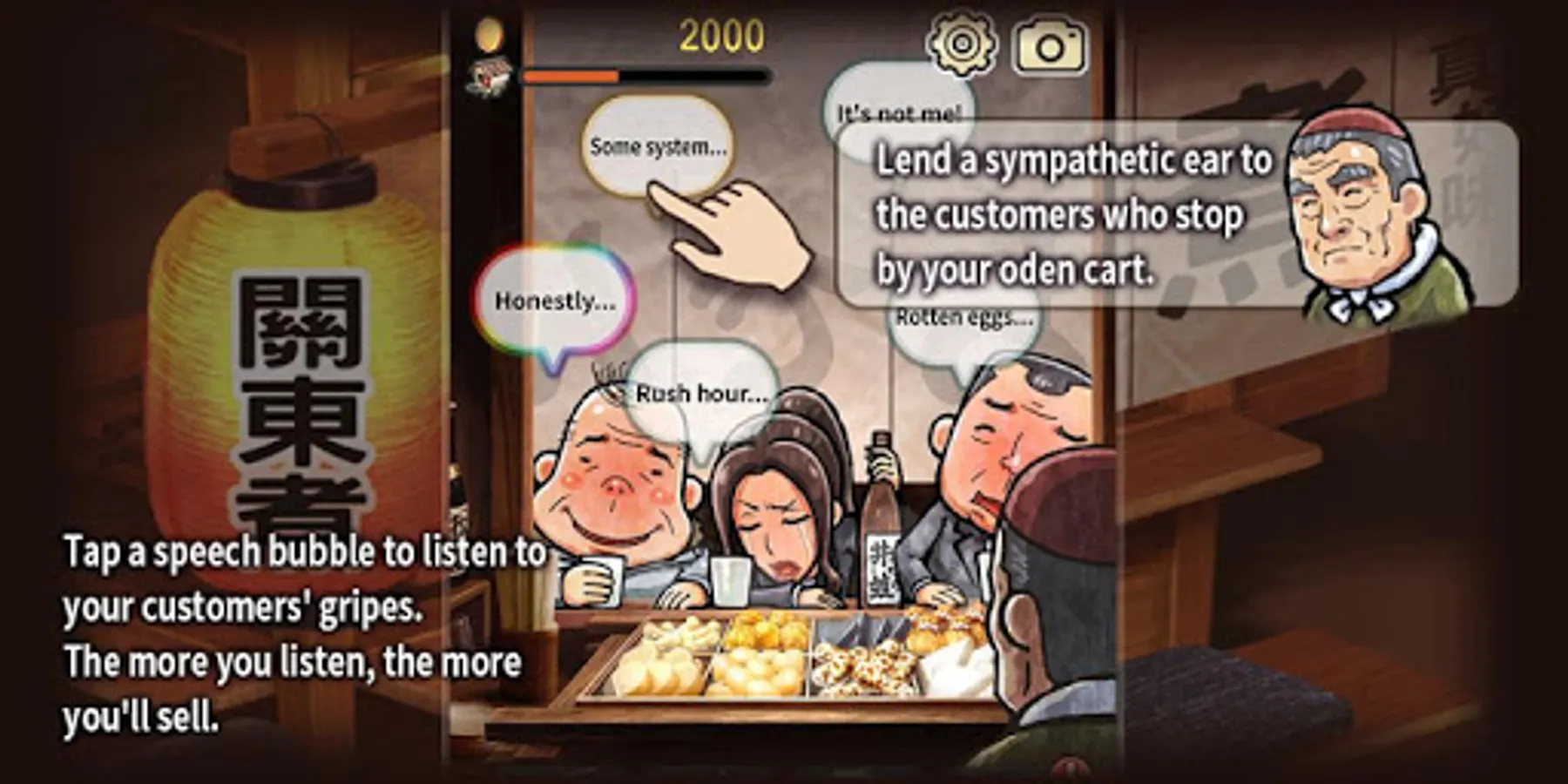 ・Tap or swipe the customers' gripes to listen to them. They'll feel better, and you'll sell more oden. Win-win!