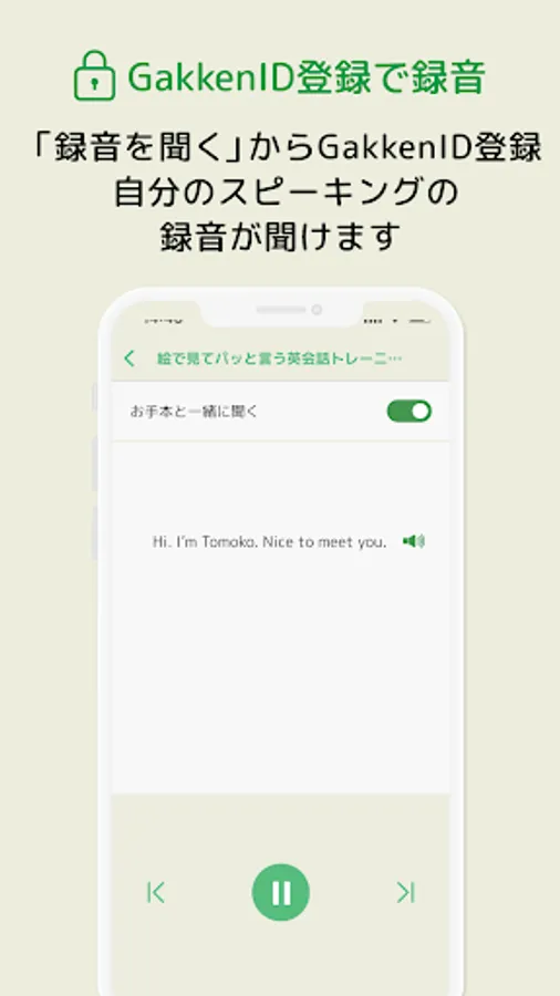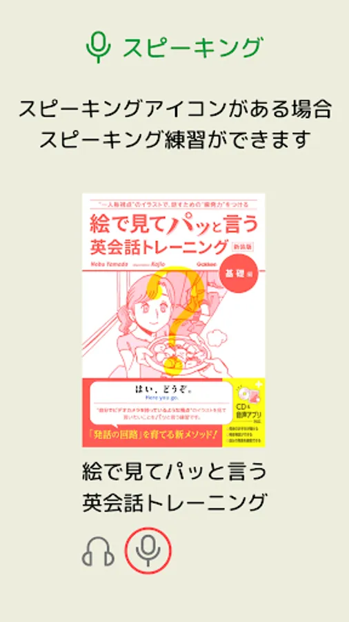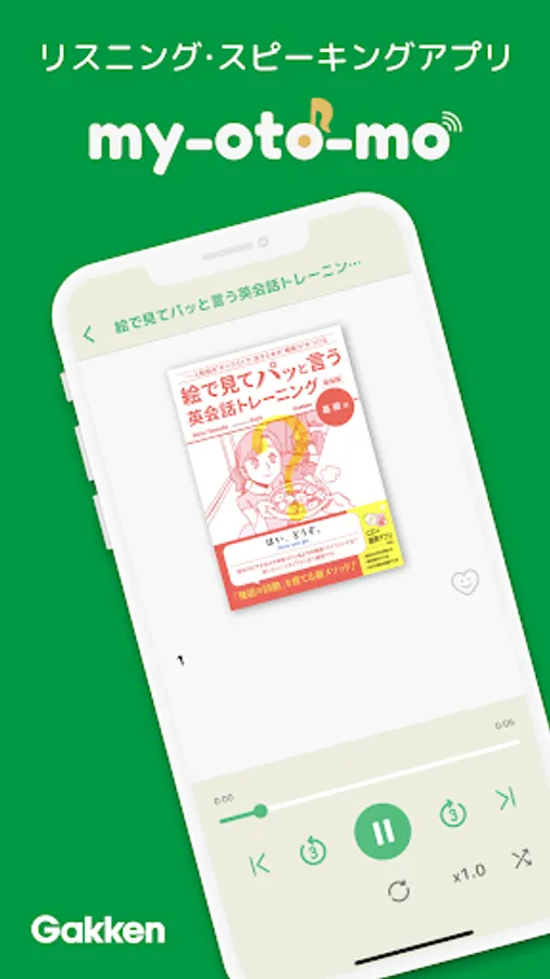 This is a free app that allows you to play the audio from Gakken's language books on your smartphone or tablet. Convenient functions useful for language learning, such as playback speed adjustment (0.5 to 2.0 times) and AB repeat. "You can listen to audio on your smartphone even if you don't have a CD player!" For books that support "Speaking", it is possible to judge pronunciation and record and play back (registration with GakkenID is required to play back recorded voice).
