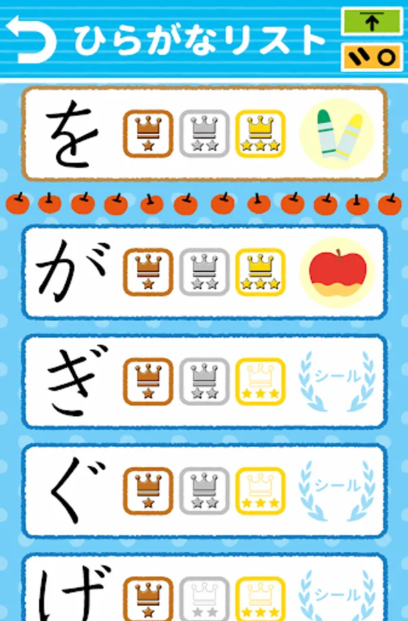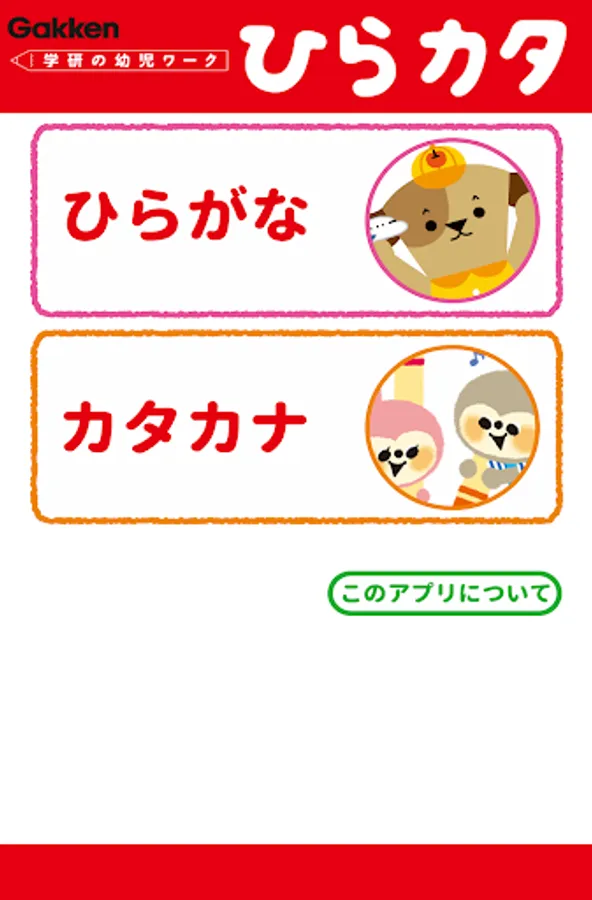 ● "Hiragana" in this app is the same content as "Gakken's Children's Work Hiragana-Moji Judgment".