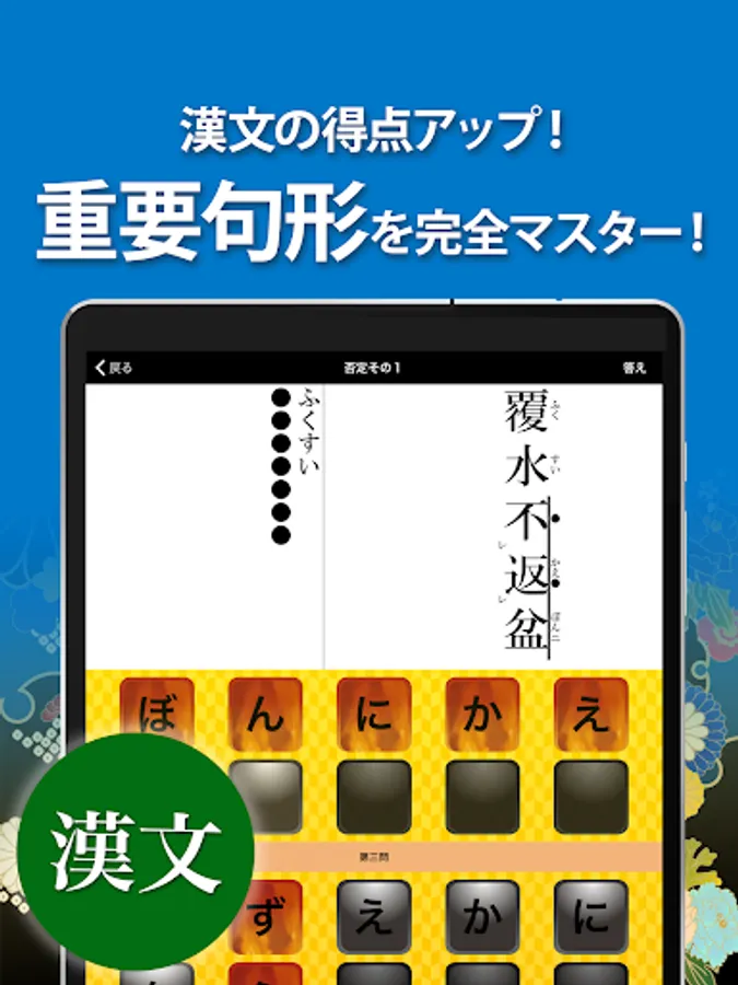 A must-see for junior high school students and high school students who are learning ancient and kanbun! An app that allows you to learn "classical words", "classical grammar" and "kanbun" that frequently appear in regular exams and common tests for free! !