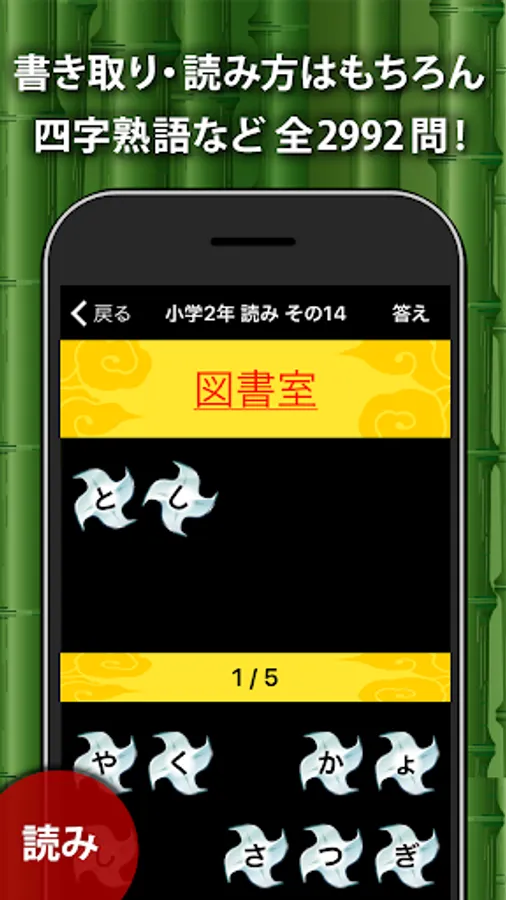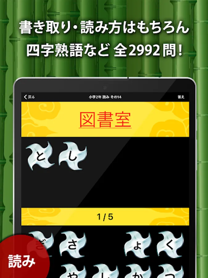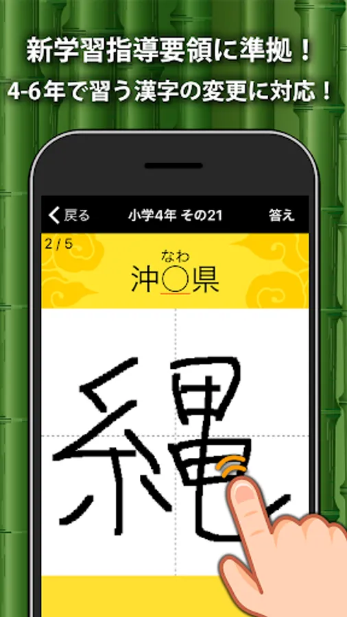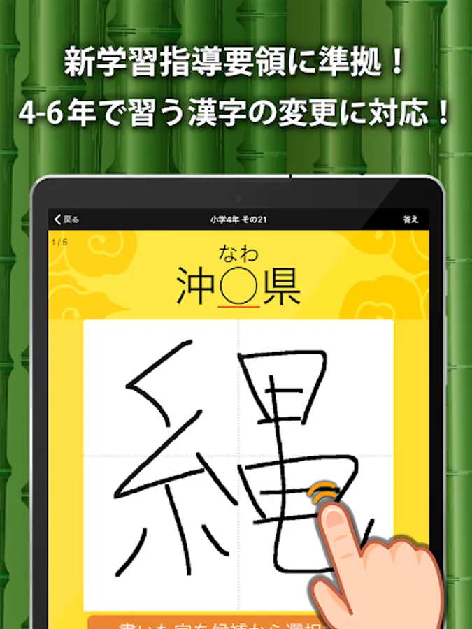 The answer method for the kanji writing problem is handwriting. Write kanji on the screen with your finger and the kanji will be automatically recognized.