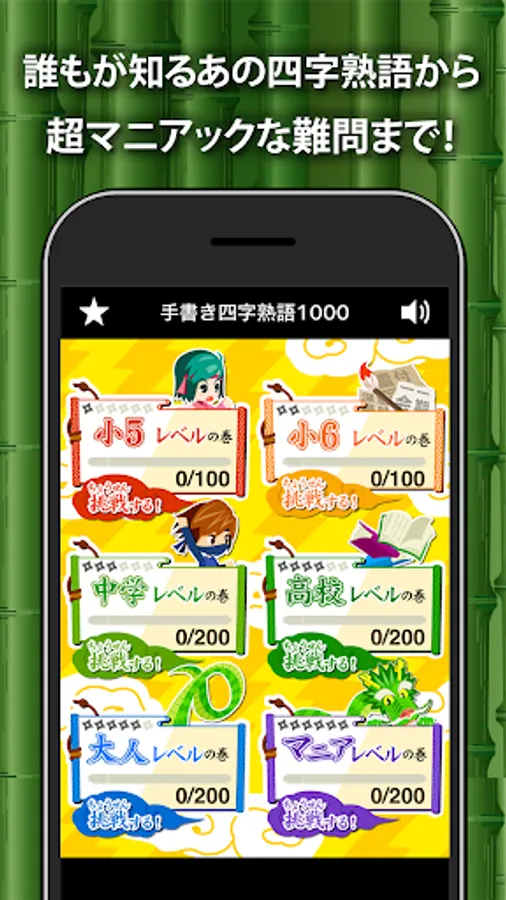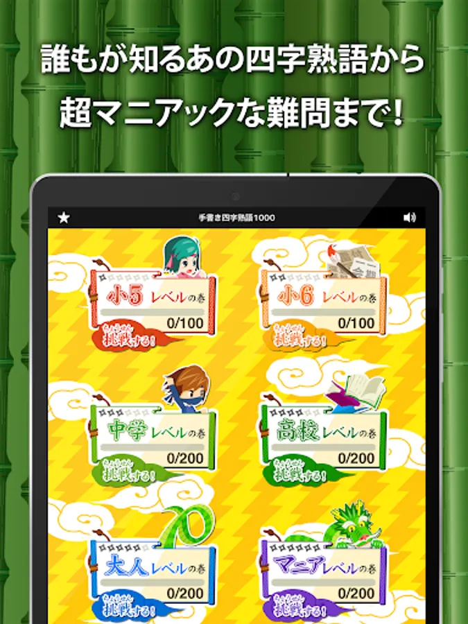 Includes 6 levels from elementary school students to maniacs, all 1000 questions.