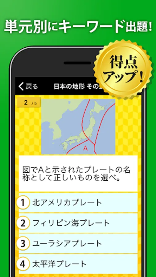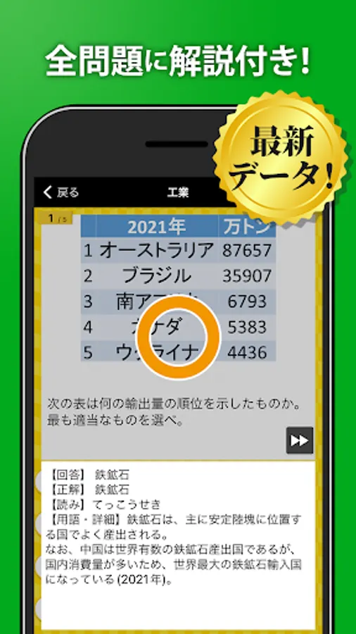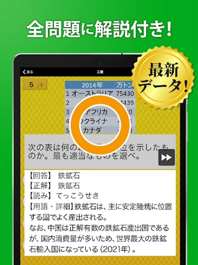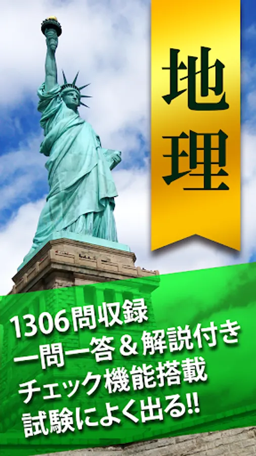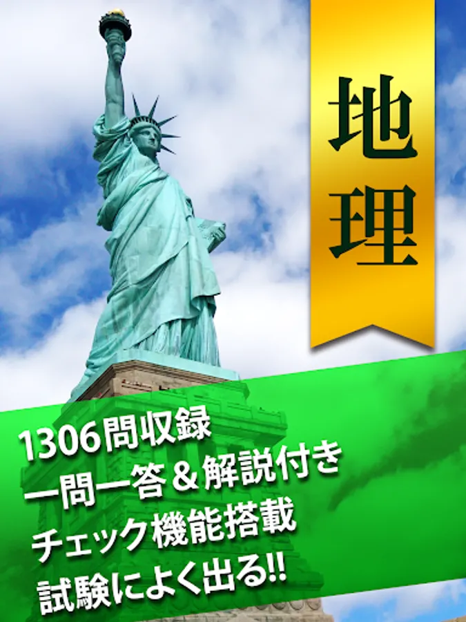 This application "Geography One Question and Answer (High School Geography/Common Test Geography)" is an application of the popular learning application "Hanpuku Series" with a cumulative total of 30 million downloads.