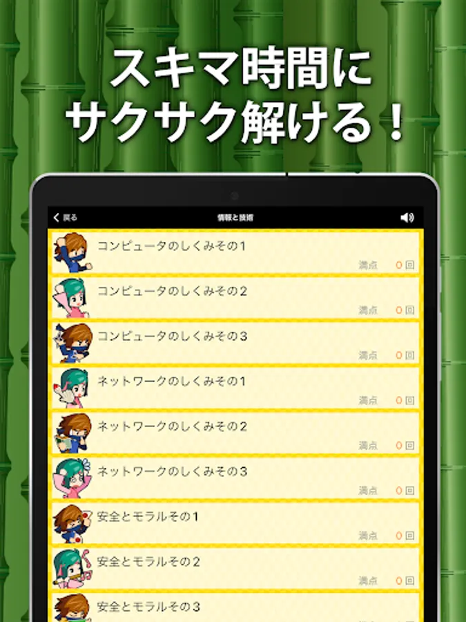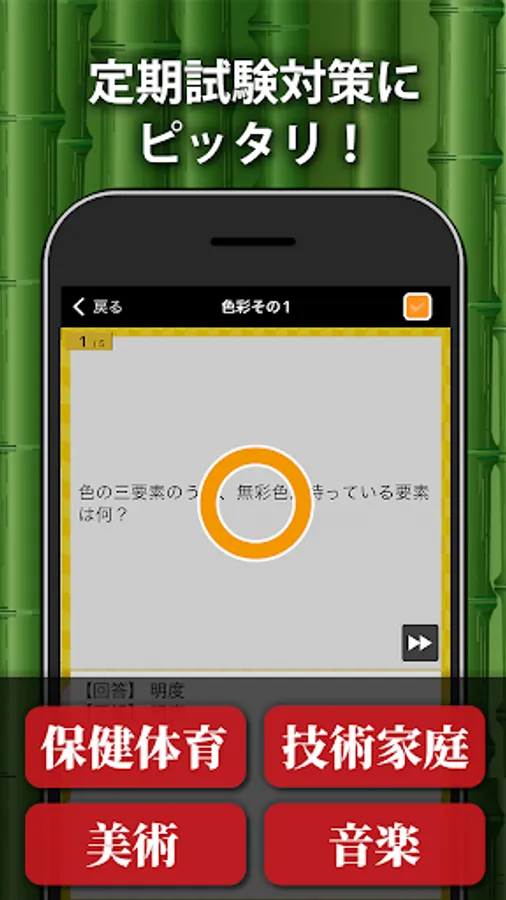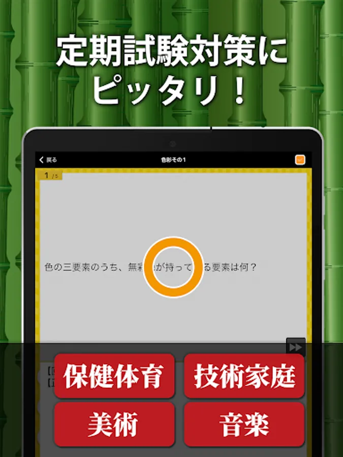 Easy-to-learn four-choice format. It is a perfect app for junior high school regular test measures corresponding to important basics.