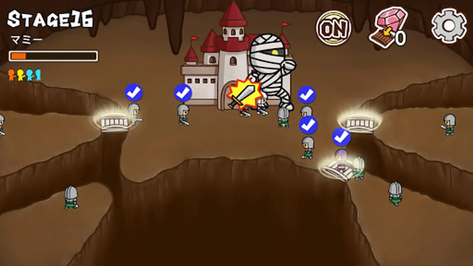 The purpose is to lead soldiers who are advancing by crossing a bridge with a touch and to defeat monsters and recover the stolen castle.