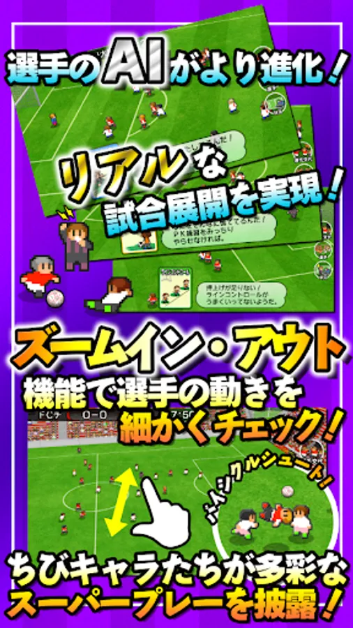 ・フォーメーションやスタメン変更でチームの戦いぶりがガラリと変わる、奥が深く遊びがいのあるサッカーシミュレーションです。