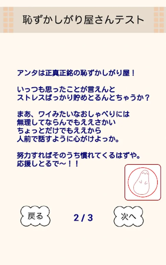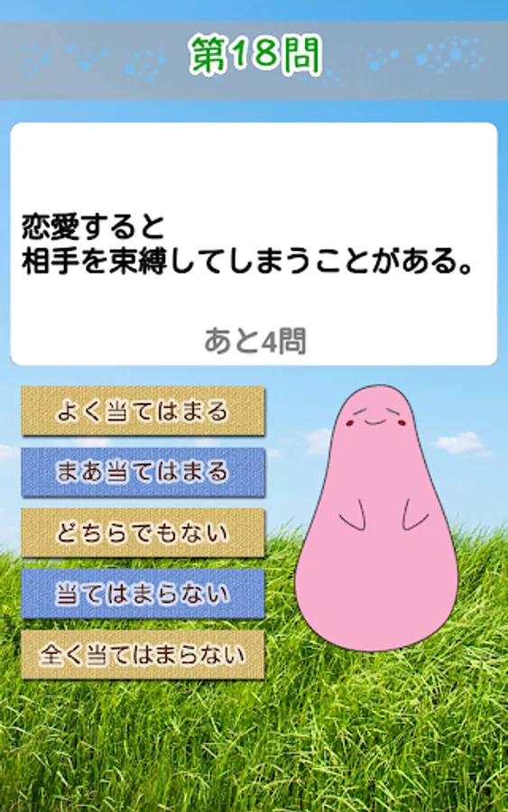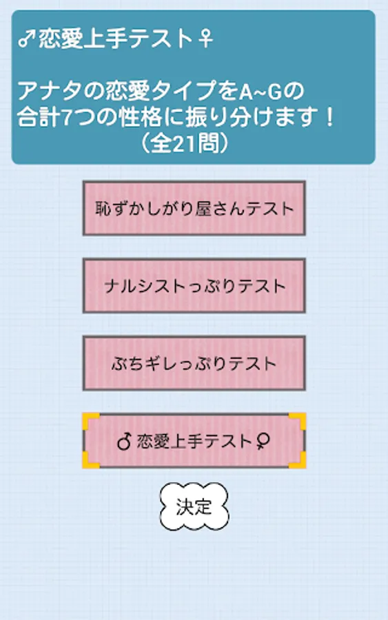 Full-scale psychological test. 4 kinds of "love, narcissist, shy and anger" has entered.