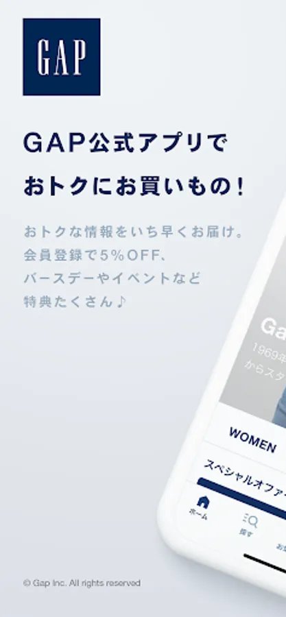 [Shopping at a great price with the Gap official app! ] Deliver valuable information as soon as possible. 5% OFF with member registration, lots of benefits such as birthdays and events ♪