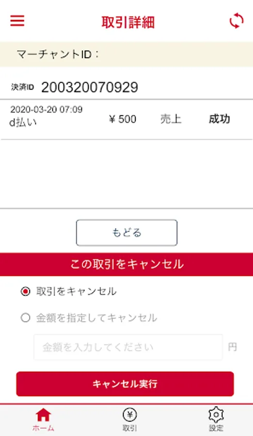 キャセル機能 ー 取引詳細画面からキャンセルを行えます。