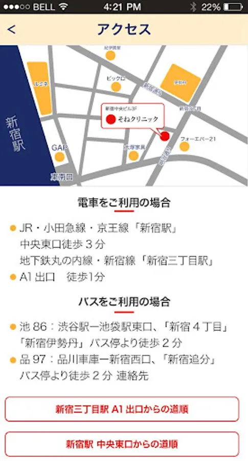 In Tokyo Shinjuku, it is Sone clinic app.