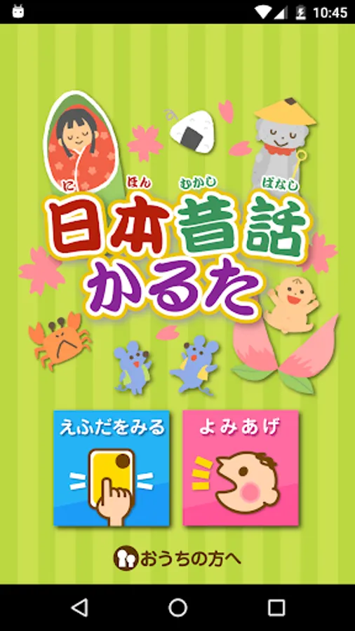 音声を聞きながら絵札を見たり、読み札を声に出して読んでひらがなのお勉強をすることができます。あらすじがついているので、おうちのかたが説明してあげることができます。