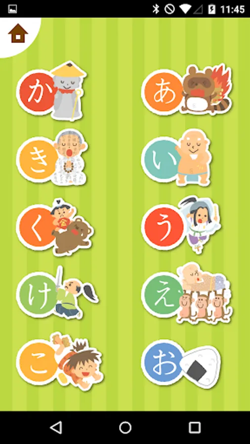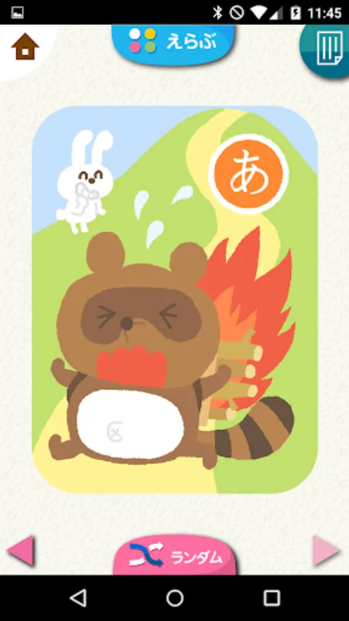 絵札をタッチすると読み札の音声が、ひらがなをタッチするとひらがな一文字の音声が再生されます。