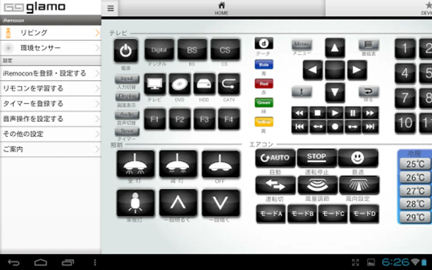 On the go. Confirmation of the sensor information, infrared, you can JEM-A equipment of operation of home appliances that can be operated.
