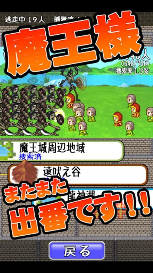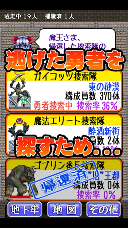 4.魔物の制圧地域を増やして地図を広げ、勇者たちを全員捕まえよう!