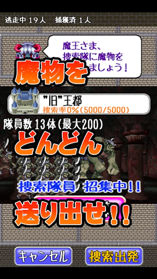1.魔物の捜索隊を編成して各地へ送り込もう。