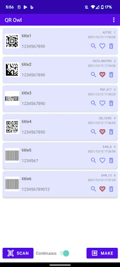 By using the ZXing library, it is possible to recognize and create all 17 types of barcodes. It is possible to handle both 1D and 2D barcodes as well as QR codes.