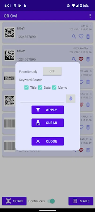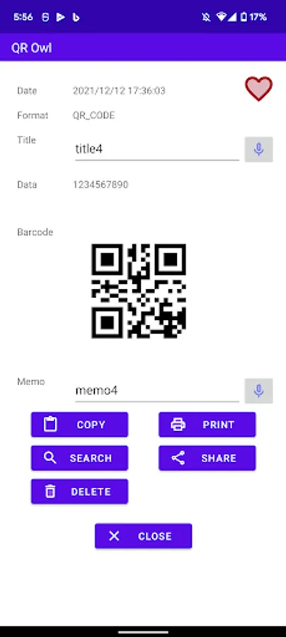 It is possible to share the barcode image with other apps. By sharing, you can send emails, post to SNS, and save to the clipboard.