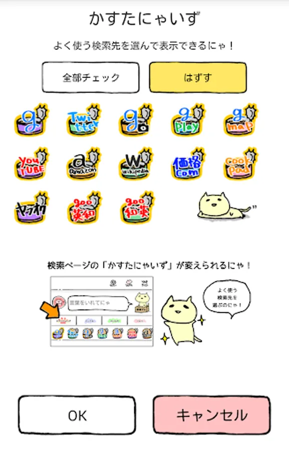 ④ Select your favorite site / app and search easily ☆ (Funny cat)