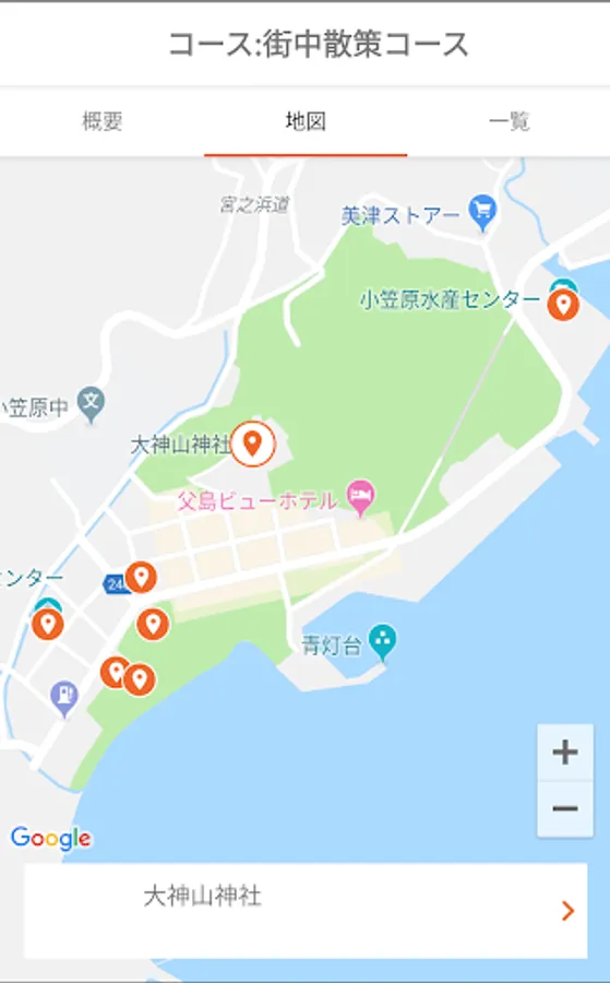 スポット同士をつないで地図上に表示。距離と標準的な所要時間を把握しながら現地をめぐることができます。