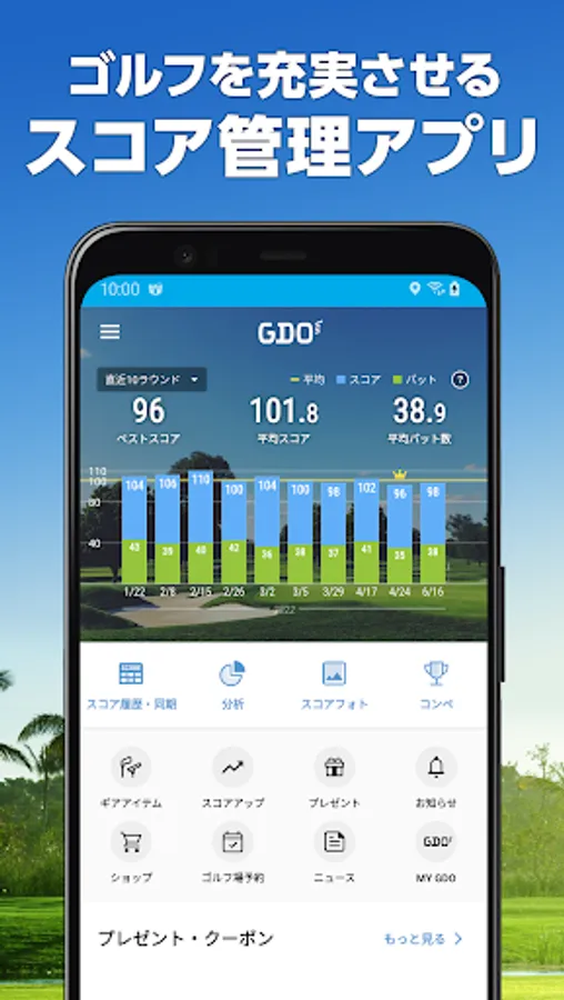 "GDO Score" is a score management / analysis app created by a golf company with a focus on ease of use!