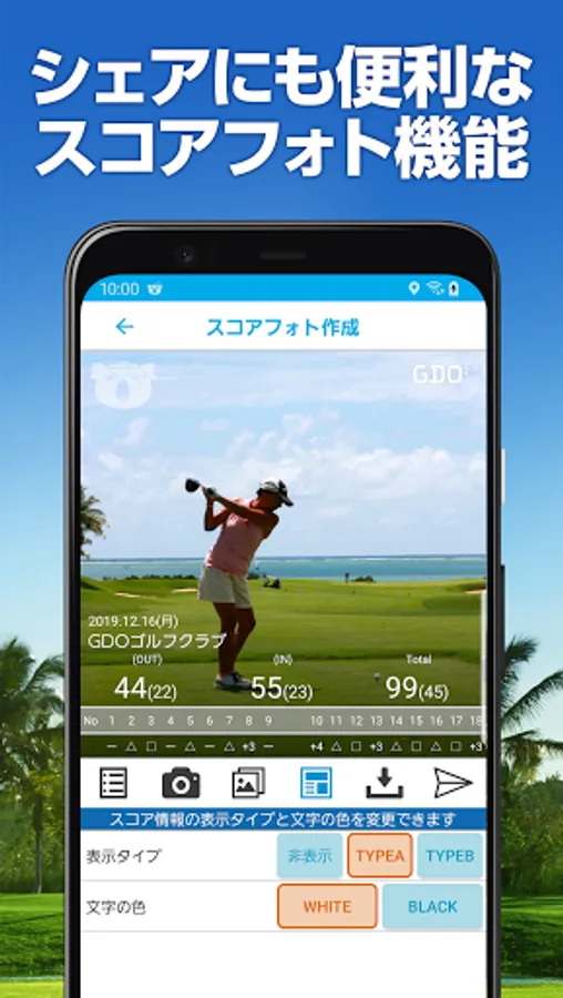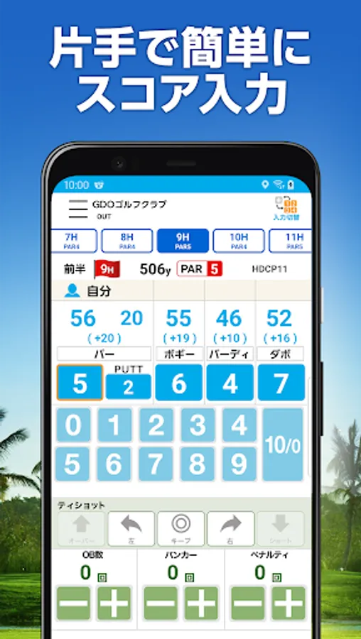 You can easily enter the score with one hand while playing, and the total score is automatically calculated! You can choose from two types of score input. You can also enter performance information for each hole, such as the number of OBs and bunker shots, and you can centrally manage multiple score data. It can also be used outside the service area.