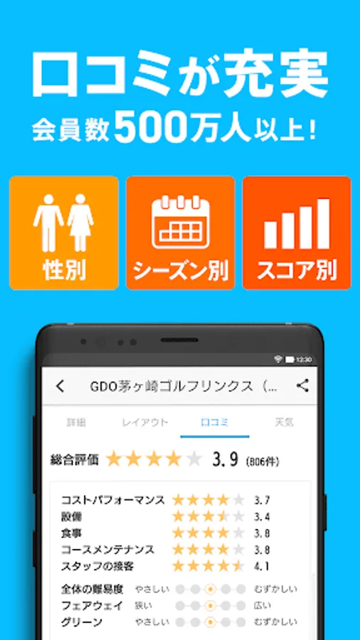 Popular golf course ranking: You can search golf courses in order of number of reservations and golf difficulty.