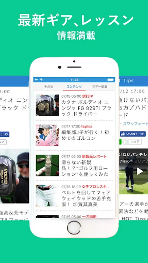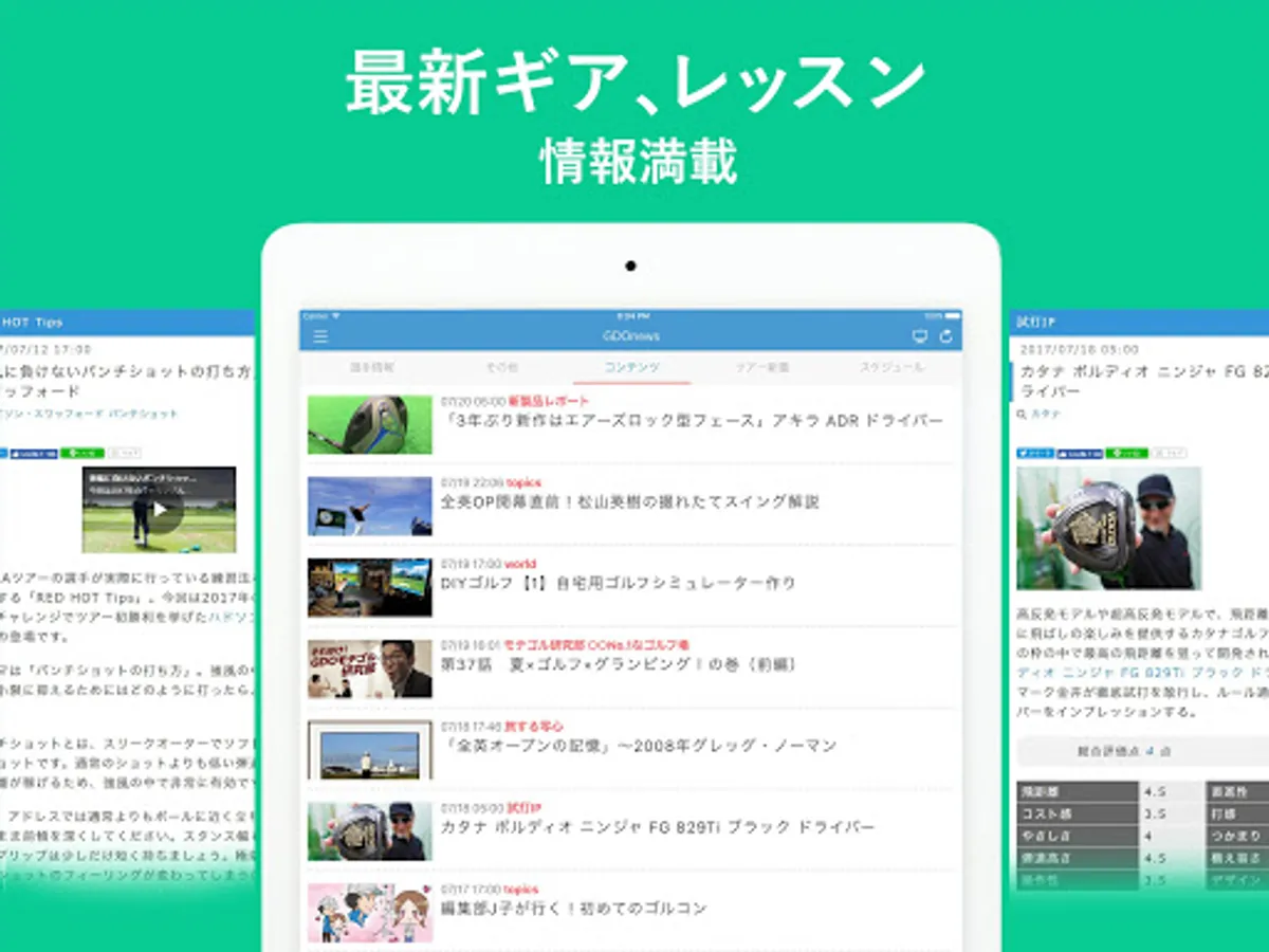 Not only the tournament, player information and swing videos, also information of gear lessons enhance