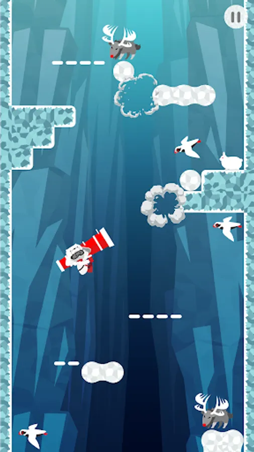 Crevasse(クレバス)は、幻想的な極寒の世界で氷の裂け目を落ちていくゲームです。プレイヤーはバズーカの反動で空中を飛び回り、時には敵を避けたり倒したり…。タップのみのシンプル操作でフレンドよりも下へ下へと降っていきましょう。