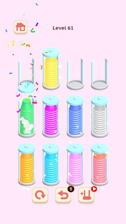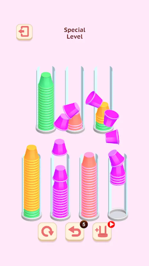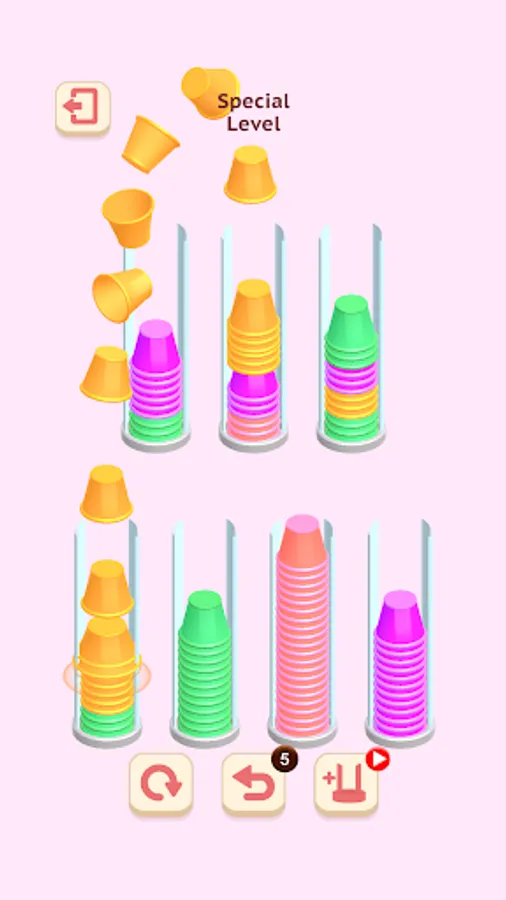 In each level, you'll find an assortment of colorful cups scattered across the playing area. Your goal is to strategically move these cups around so that cups of the same color are grouped together. But beware, some cups may get stuck in tricky positions, adding an extra layer of challenge to the game.