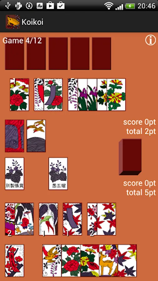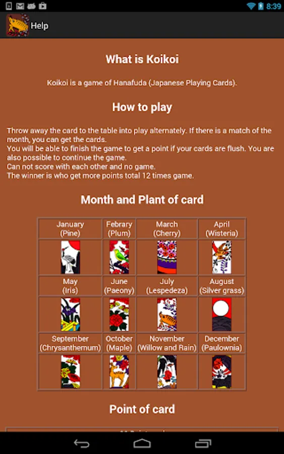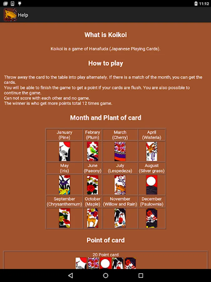 Koikoi is a game of Hanafuda (Japanese Playing Cards).