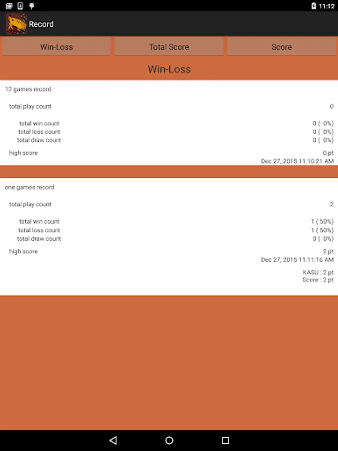 The winner is who get more points total 12 times game.