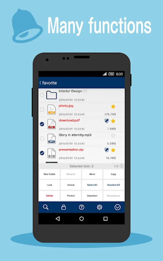 ・ Function to protect valuable files from being deleted.